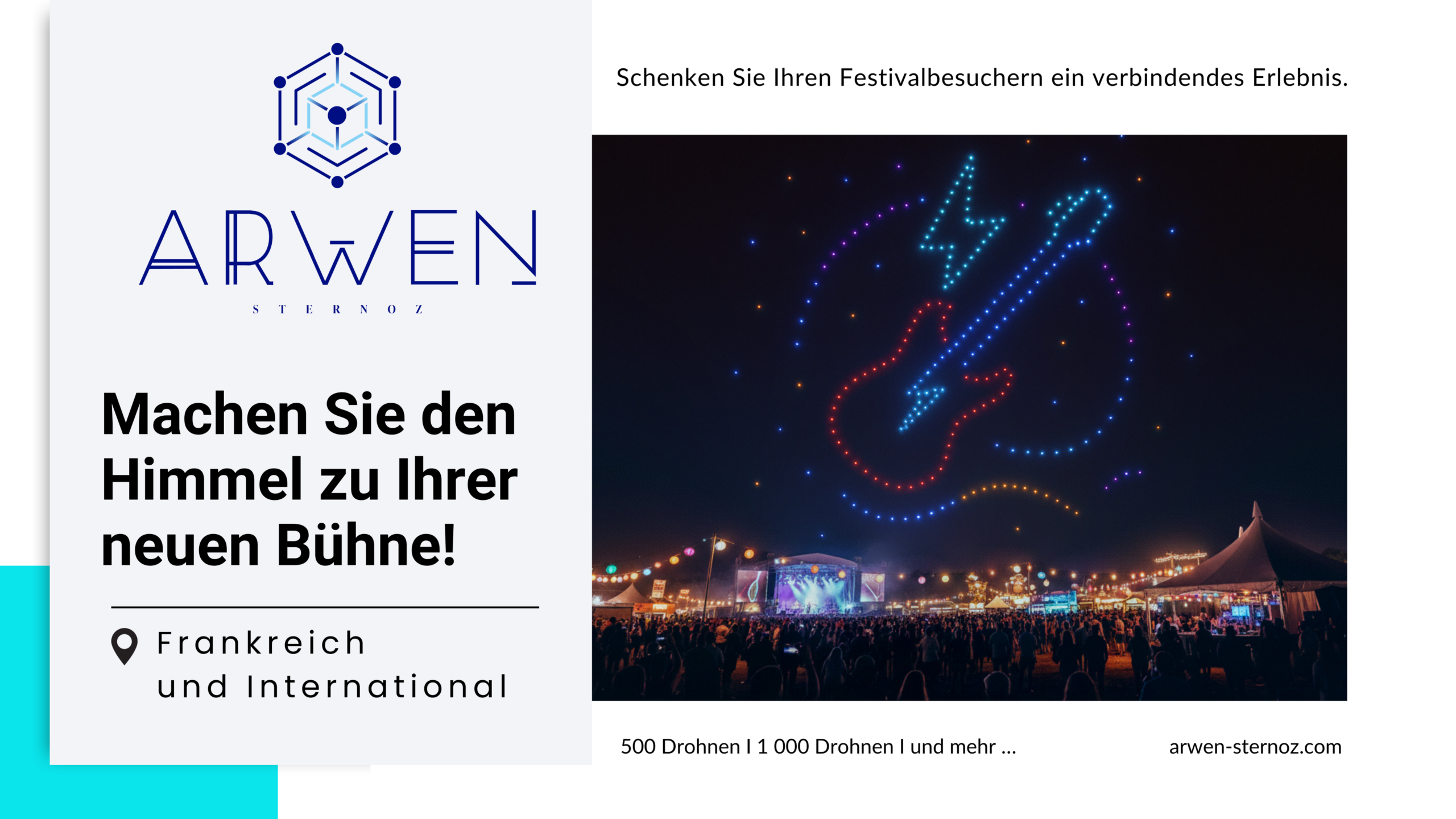 Bereichern Sie Ihr Line-up talentierter Künstler mit der Magie leuchtender Drohnen! http://arwen-sternoz.com/wp-content/uploads/2025/12/As-Festival.mp4 Ihre Festivalbesucher suchen nach unvergesslichen und spektakulären Erlebnissen. Arwen Sternoz hat daher ein exklusives Angebot für Festivals entwickelt,…